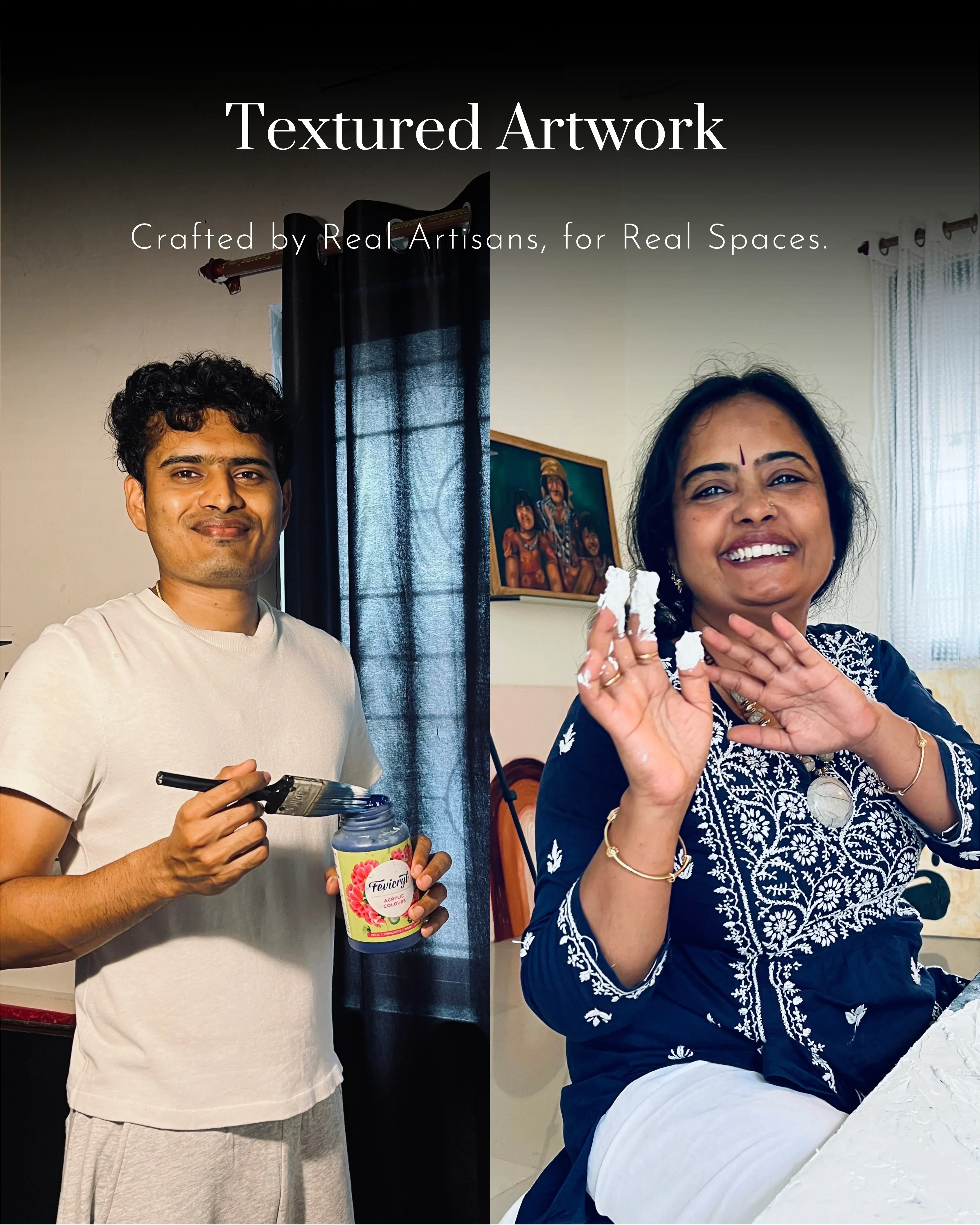 All our paintings are lovingly handmade by talented artists from Chikodi, a small town in Karnataka. Through Kalai, we are on a mission to carry their heartfelt creations to homes across the world — giving them the recognition they truly deserve. Every purchase is more than just art on your wall — it’s a spark of hope, an opportunity, and a step towards changing lives.