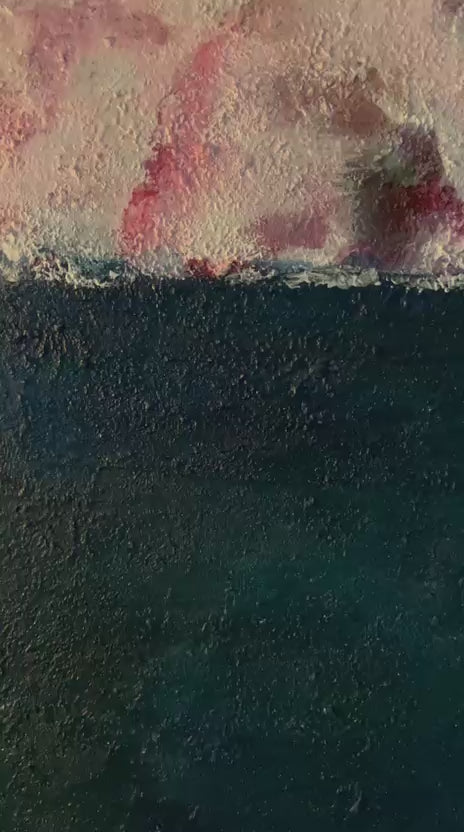 This painting brings a whimsical yet sophisticated touch to your space with its soft, fluffy pink cloud floating against a rich emerald green backdrop. The dreamy contrast creates a calming, almost meditative quality that's both playful and elegant. Perfect for adding a pop of gentle color and serene sky-like tranquility to any room.